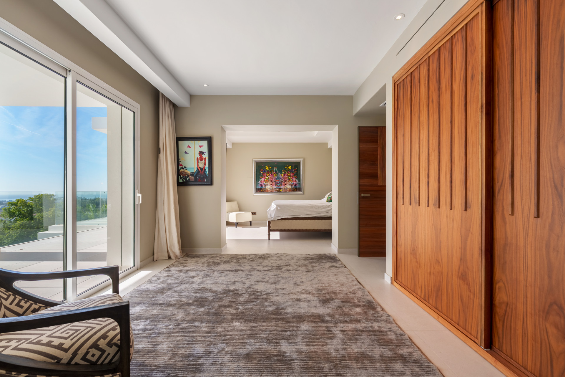 Leisure spaces include a cinema room, wine bodega, and fully equipped home gym, while landscaped terraces, dual swimming pools, and multiple viewpoints provide calm and privacy without isolation. Located in a tranquil yet well-connected enclave near Marbella, Puerto Banús, golf courses, and schools, the villa combines scale, guest independence, and a setting that enhances daily living. A private viewing truly reveals the harmony and appeal of this exceptional property.